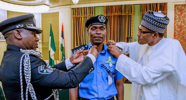 See photos of President Buhari decorating the new IGP below: