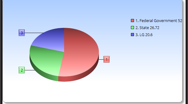 According to the current revenue allocation formula, the Federal government gets 52.68 per cent, State, 26.72 per cent and Local government 20.60 per cent.